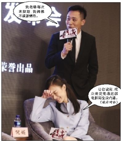 劉燁不斷爆料影片的激情戲,倪妮有點“繃不住”。新京報記者 郭延冰 攝