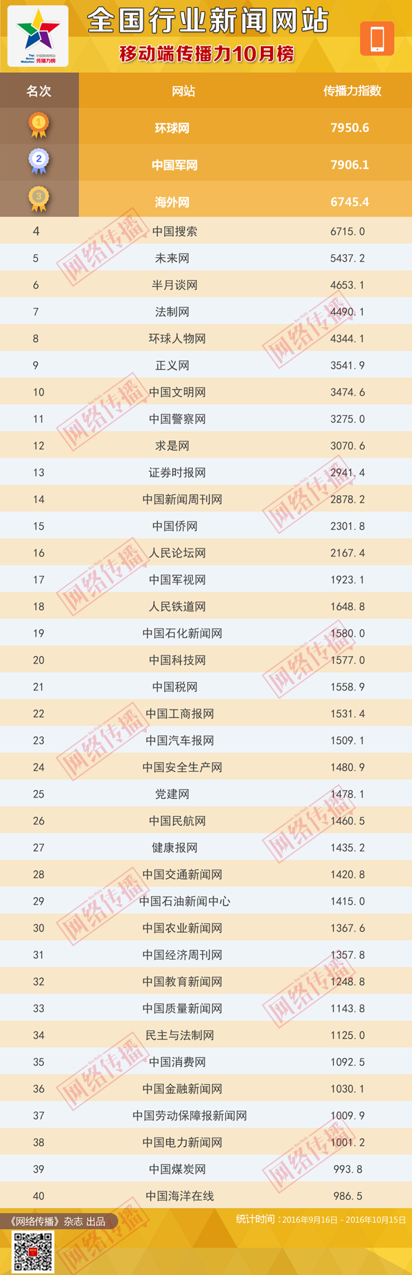 全国行业新闻网站传播力2016年10月榜发布