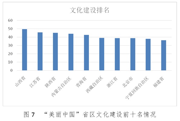 文化指标排名前十的地区依次为山西省、江苏省、陕西省、内蒙古自治区、青海省、西藏自治区、浙江省、北京市、宁夏回族自治区、福建省。