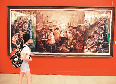 观众在中国美术馆参观“大潮起珠江——纪念改革开放40周年全国美术作品展”。 杜建坡摄(人民图片)